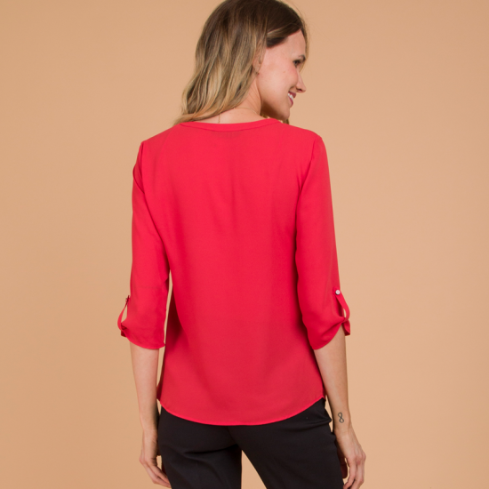 BLUSA LISA COMPOSICIÓN: 100% POLYESTER MODELO: 140-042-051 TALLA: 36-38-40-42-44-46-48-50L COLOR: Burdeo 116